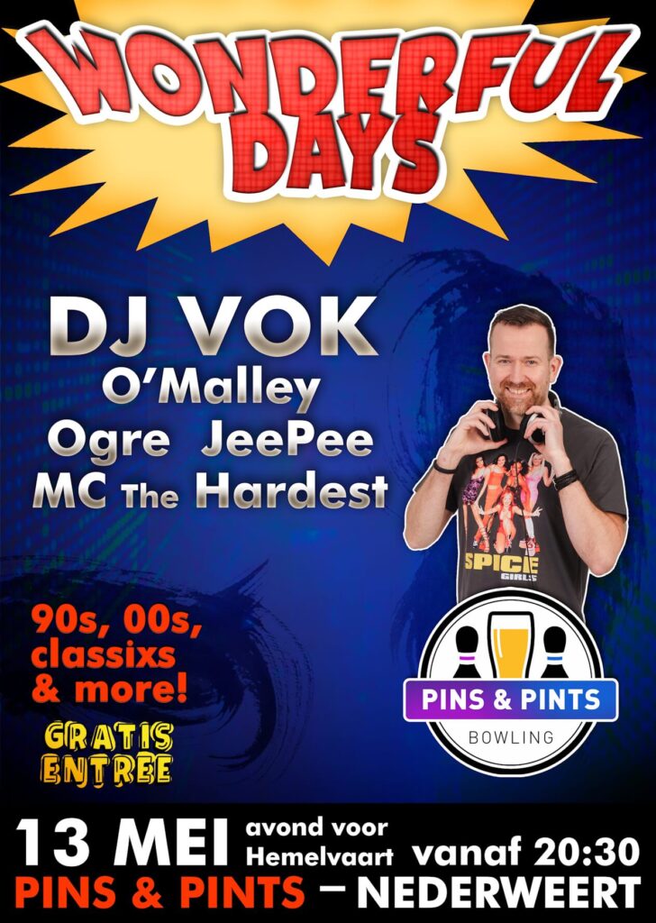 Op woensdag 13 mei, de avond voor Hemelvaartsdag, presenteert DJ Vok de vierde editie van ‘Wonderful Days’ bij Pins & Pints in Nederweert. Op deze legendarische ode aan de stapavonden…